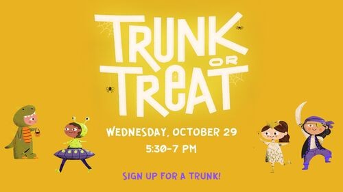 You're invited to Trunk or Treat! Bring a friend, bring your family, and jump from bounce houses to games, win prizes and more! Food and fun for the whole family. See you there!